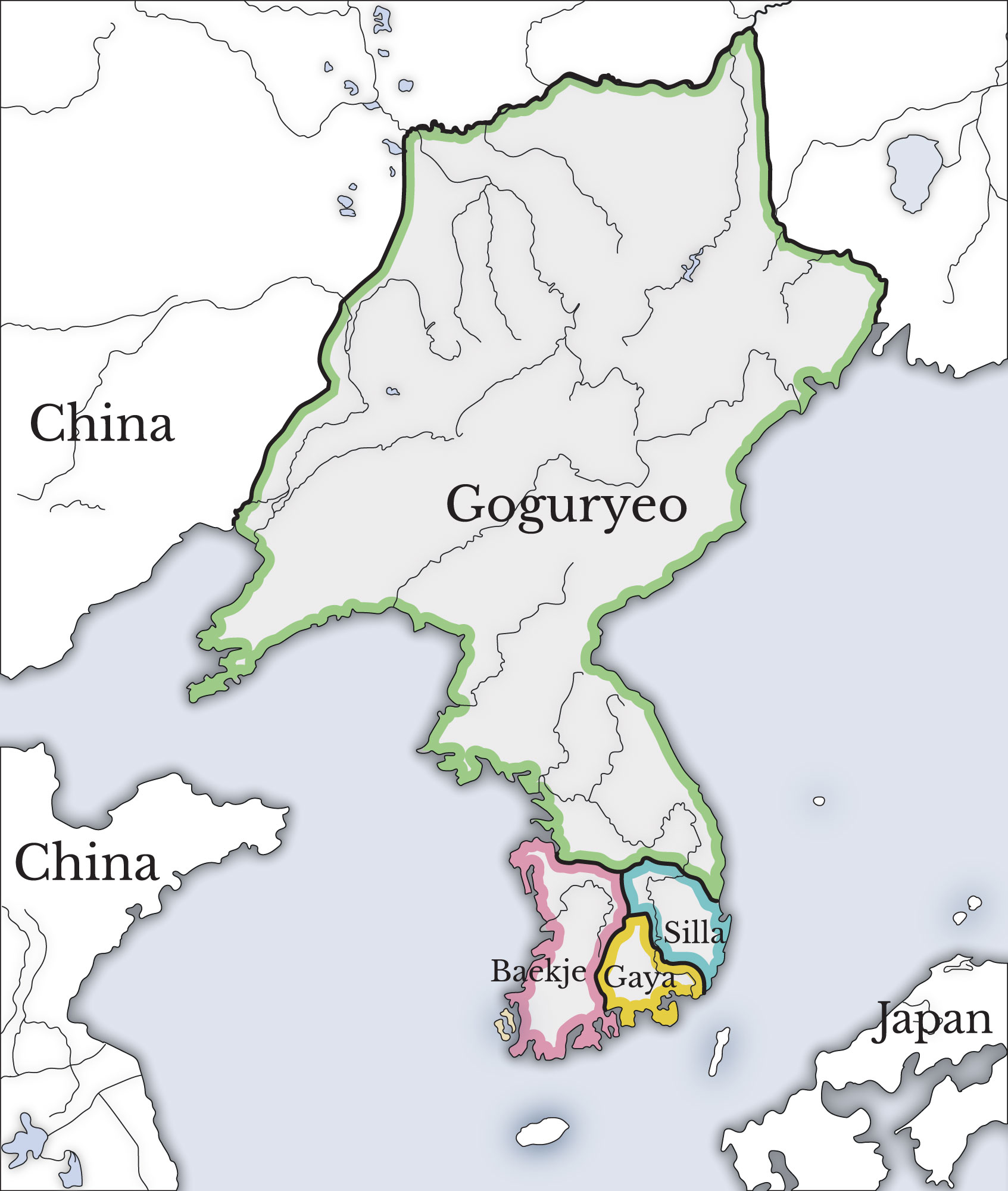 Dans les premiers jours de cette période, les fonctions judiciaires étaient entre les mains des conseils tribaux ou la tête d’un clan. Goguryeo, l’un des trois royaumes, avait une conférence de chefs tribaux servant de l’organisation judiciaire supérieure. A Baekje, un autre royaume, l’un des ministres royaux assumait l’autorité judiciaire, Silla l’attribuant aux chefs d’administration locaux, qui étaient de temps en temps inspectés par des émissaires royaux.